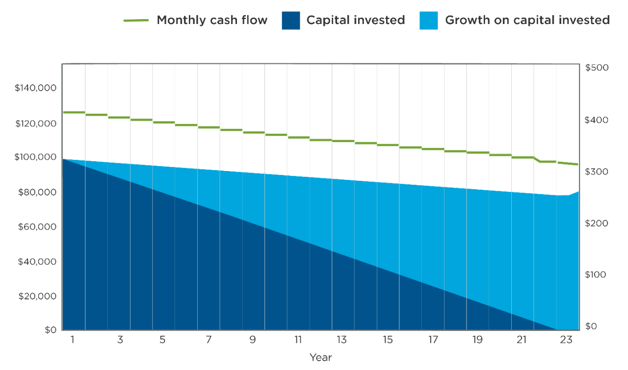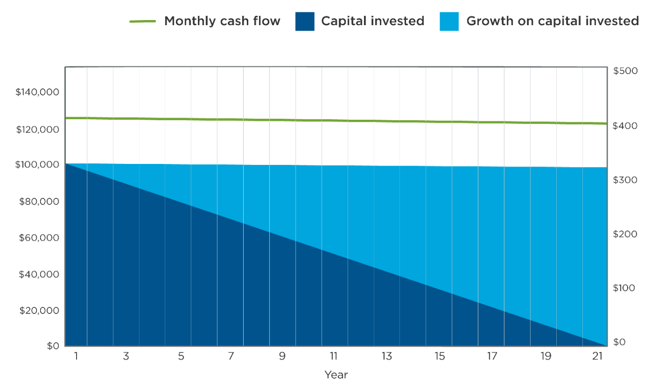 Income from an investment in Series T will primarily consist of a return of capital distribution but may also consist of net income and/or net realized capital gains. The return of capital withdrawals will lower the capital of the investment over time. What remains in the account is any growth the investment has achieved over the years on the original investment. Any subsequent withdrawals after the capital reaches $0 are taxable in the form of capital gains, which is currently taxed at a lower rate compared to dividend or interest income.